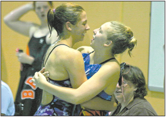 by Stephen Crane Pinedale High School freshman Michelle Fenn, left, gets a congratulatory hug from freshman teammate Haley Gray after breaking the school record in the 50 freestyle. See story and more photos on page 7B. Photo credits: Stephen Crane See The Archives for past articles. Copyright © 2008 Pinedale Roundup All rights reserved. Reproduction by any means must have permission of the Publisher. Pinedale Roundup, PO Box 100, Pinedale, WY 82941 Phone 307-367-2123 editor@pinedaleroundup.com |