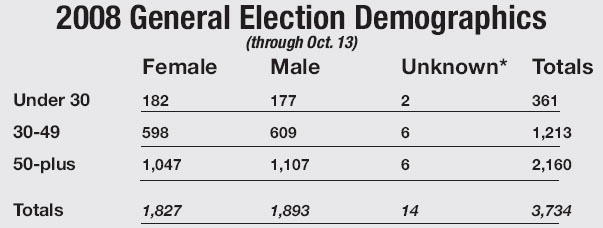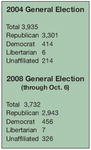 The early registration period ended earlier this month, and as of Oct. 13 there were 3,734 registered voters in Sublette County. During the last presidential election in 2004, the county had 3,935 registered voters. Of the newest numbers, democrats made significant gains in the county, raising their totals from 414 to 456. Western Wyoming’s independent streak also showed, with unaffiliated voters increasing by about 65 percent to 326. Republicans dropped from 3,301 to 2,943. “I think we have more democrats now than what we used to,” Lankford said. “We have a lot of folks that won’t declare a party when they register.”