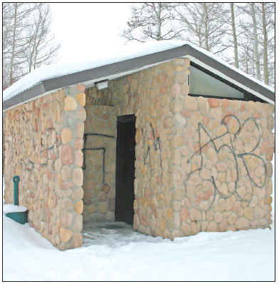 by Stephen Crane On the morning of Dec. 20, Deputy Landon Call, of the Sublette County Sheriff’s Department, observed a troubling scene at Boyd Skinner Park in Pinedale. “Somebody vandalized our community park,” said Call. “And it’s kind of irritating. They spray painted the whole bathroom.” Armed with black spray paint, someone defaced the entire exterior of the men and women’s bathrooms, spraying various letters, numbers and swastikas onto the stone walls of the structure. Deputy Call has since investigated the scene, looking for clues that might lead him to the perpetrator. “We’ve got substantial evidence from the crime scene,” said Call. “And I’m working on it right now. That’s where we’re at.” Because of the stone texture that comprises the bathrooms at Boyd Skinner Park, removing the spray paint will be an ordeal as well. “We may have to use a high-pressure washer,” said Ron Hanson, maintenance supervisor at Pinedale’s town shop. “Or they do make a graffiti remover, so we may be able to get it off with that.” Anyone with information concerning the vandalism is encouraged to make an anonymous call to the Sublette County Sheriff’s Department at 367-4378. Photo credits: Stephen Crane See The Archives for past articles. Copyright © 2009 Pinedale Roundup All rights reserved. Reproduction by any means must have permission of the Publisher. Pinedale Roundup, PO Box 100, Pinedale, WY 82941 Phone 307-367-2123 editor@pinedaleroundup.com |