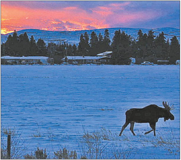 by Stephen Crane This photo, taken last Monday evening by local resident Edward Foley, shows a large bull moose trudging along the fence line that parallels Highway 191, just south of Pinedale. For more moose photos from that location by Stephen Crane, please see page 2B. Photo credits: Stephen Crane See The Archives for past articles. Copyright © 2009 Pinedale Roundup All rights reserved. Reproduction by any means must have permission of the Publisher. Pinedale Roundup, PO Box 100, Pinedale, WY 82941 Phone 307-367-2123 editor@pinedaleroundup.com |